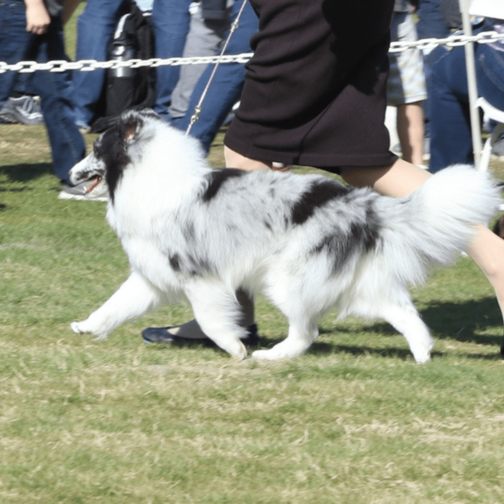 Olivia appears to be a moderately sized female with a well-balanced structure. Her head features a defined stop and a strong jawline. She moves with both reach and drive, showcasing her abilities effectively in the ring. Olivia enjoys the attention of people around her.